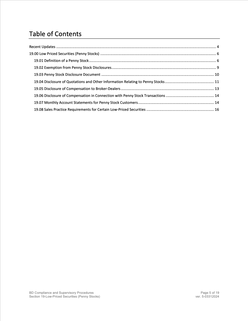 Broker-Dealer Compliance Manual Section 19- Low Priced Securities (Penny Stocks)