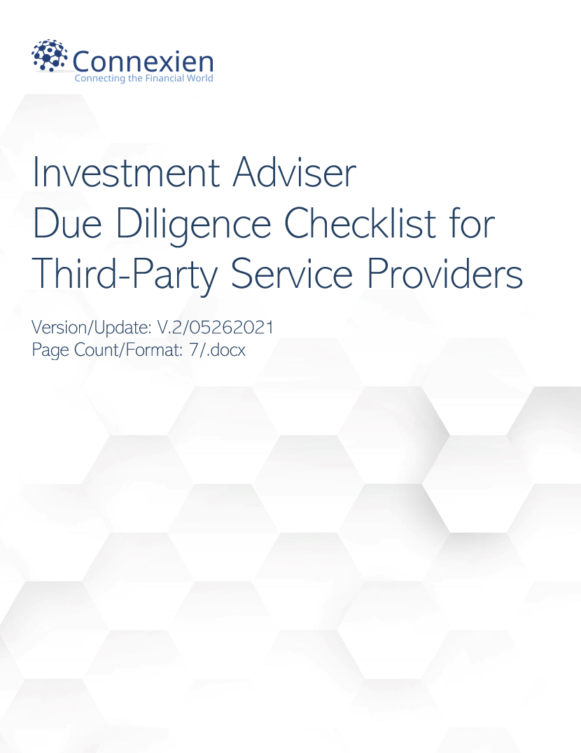 The customizable updated Due Diligence Checklist for Third-Party Service Providers serves as a useful guide as part of an Investment Adviser’s overall due diligence review process before engaging with third-party vendors. The updated Due Diligence Checklist is designed to address keys areas of interest regarding outsourcing considerations as well as select regulatory focal points addressed in SEC Exam Priorities Reports and Risk Alerts in addition to new sections on compliance, cybersecurity, GDPR, affiliate arrangements and red flags. Members also viewed the separate customizable Broker-Dealer Due Diligence Checklist for Third-Party Service Providers.