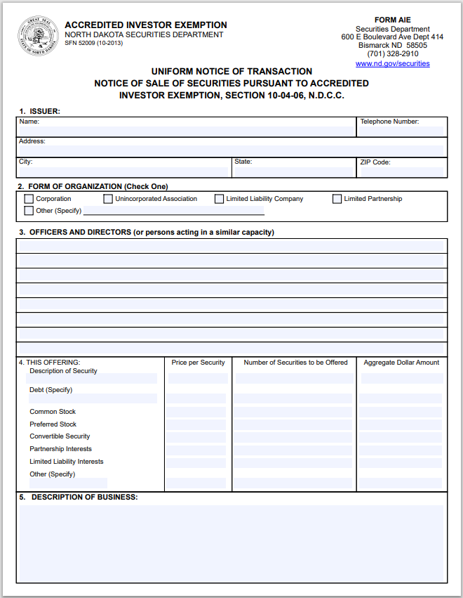 ND- North Dakota Accredited Investor Exemption Form-AIE