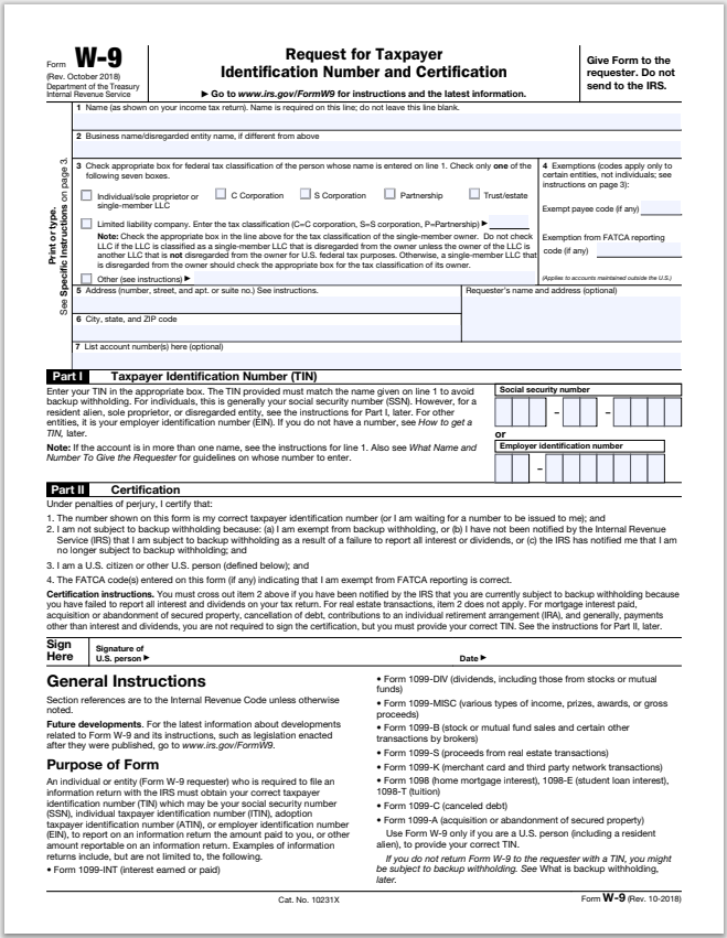 ND- North Dakota Taxpayer Identification and Certification Form W-9