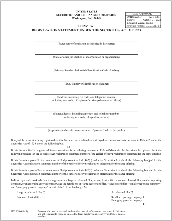 The SEC Registration Statement Form S-1 should be filed by companies seeing to have their securities listed on a national exchange. Form S-1 is a registration statement that is generally filed with an initial public offering (IPO). Members also downloaded Notice of Exempt Offering of Securities Form-D or Regulation A Offering Statement Form 1-A.